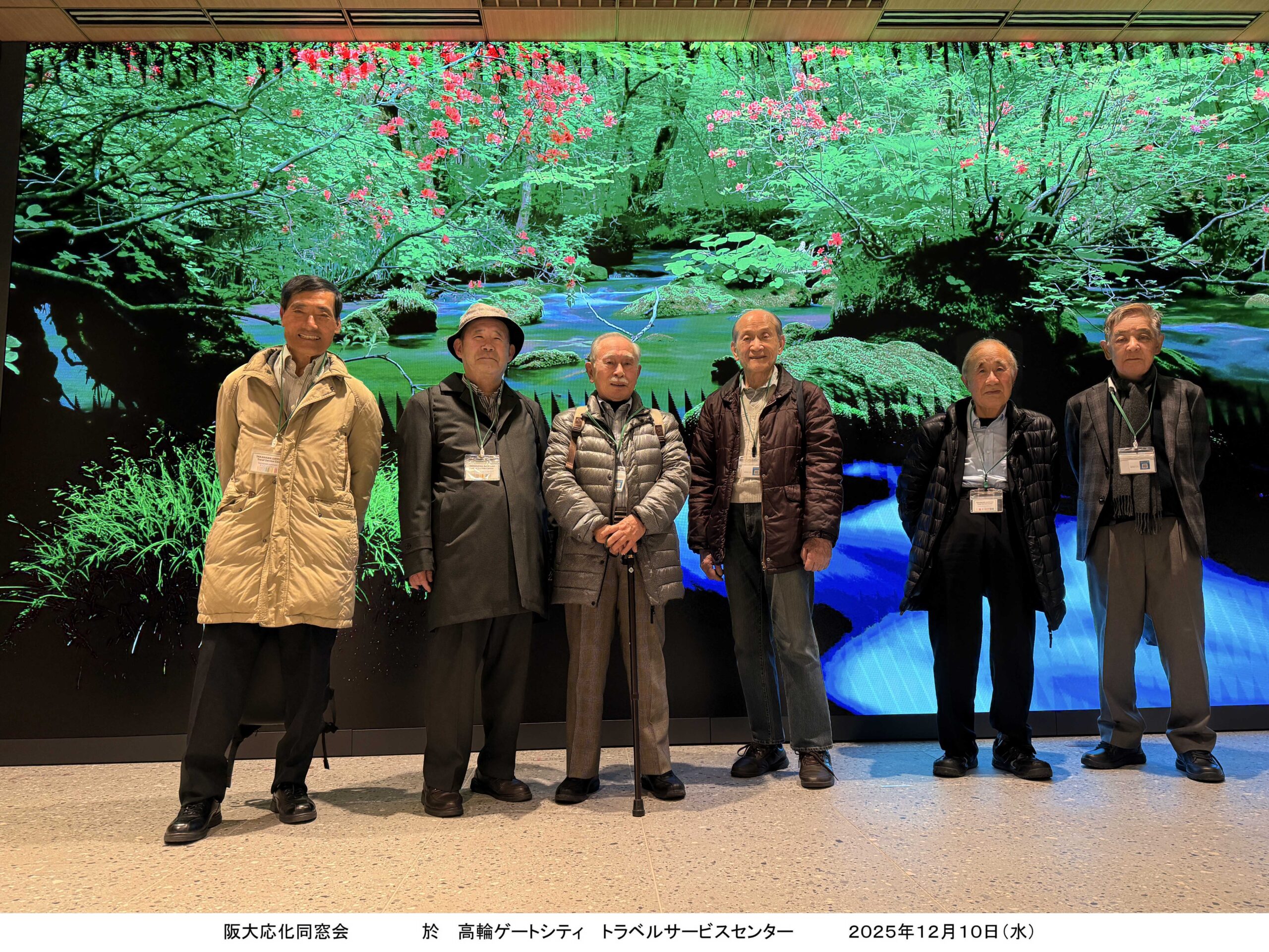 卒業後60周年の記念すべき同窓会を2025年12月10日に東京 新橋駅前の創業69年という中華料理の老舗“新橋亭”で行った。今回が最後の同窓会として当初大阪開催が企画されたが、参加希望者が数名と振るわず、東京在住の同窓生から 東京開催ならば参加希望』との声が多く寄せられ、急遽東京に計画変更となり 13名の元気な仲間が集まった。